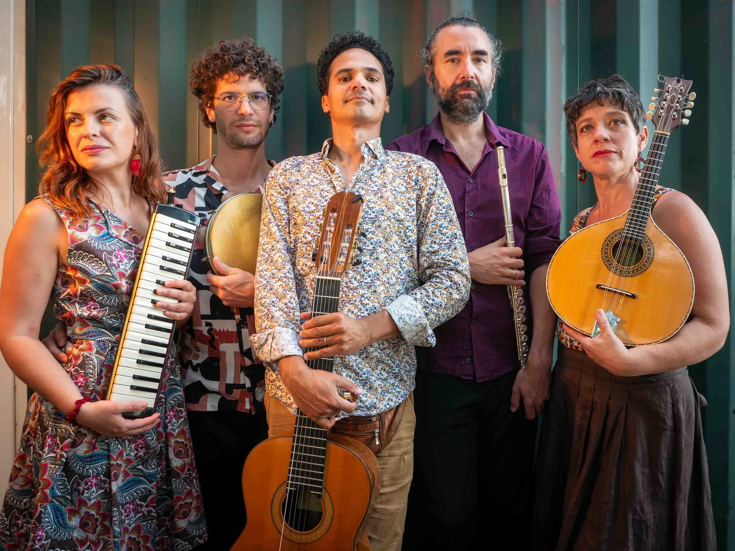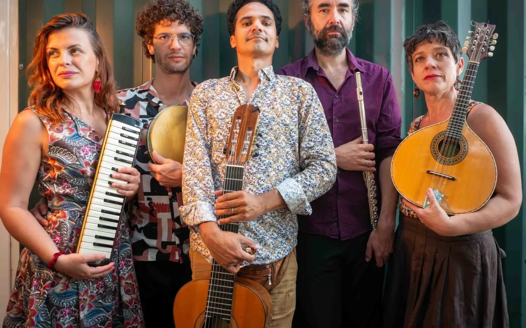 Autour de la guitare à 7 cordes de Cristiano Nascimento, une flûte et une mandoline se disputent la mélodie, soutenues ou chahutées par le mélodica et le pandeiro : c’est le choro qui débarque, joyeux et virtuose ! À la fois familier et exotique, dansant et sentimental, le choro est une musique brésilienne populaire vivante née à la fin du XIXe siècle.